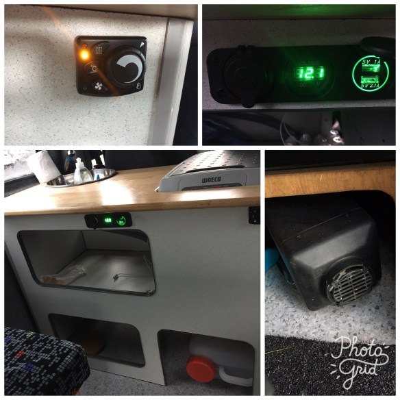 這裡是冰島,當然暖氣非常重要。這台車的暖氣是使用電力的。根據店家的說法,有兩顆電瓶,所以暖氣使用一整晚是沒有問題的。不過晚上建議先把冰箱關起來。