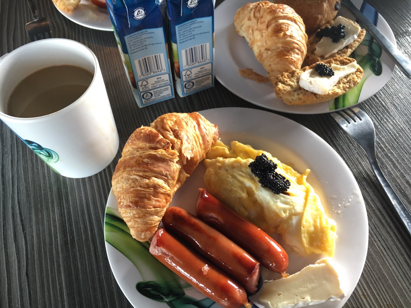 除了魚子醬之外,我還愛上了鵝肝醬這一味。除了鵝肝醬塗可頌麵包之外,我也試了瑞典的乾麵包。類似的產品,在台灣的IKEA其實有賣,之前一直覺得普普通通。不過這邊搭配了起司鵝肝醬魚子醬後,才發現之前可能是搭配的沾醬不夠強(笑)。