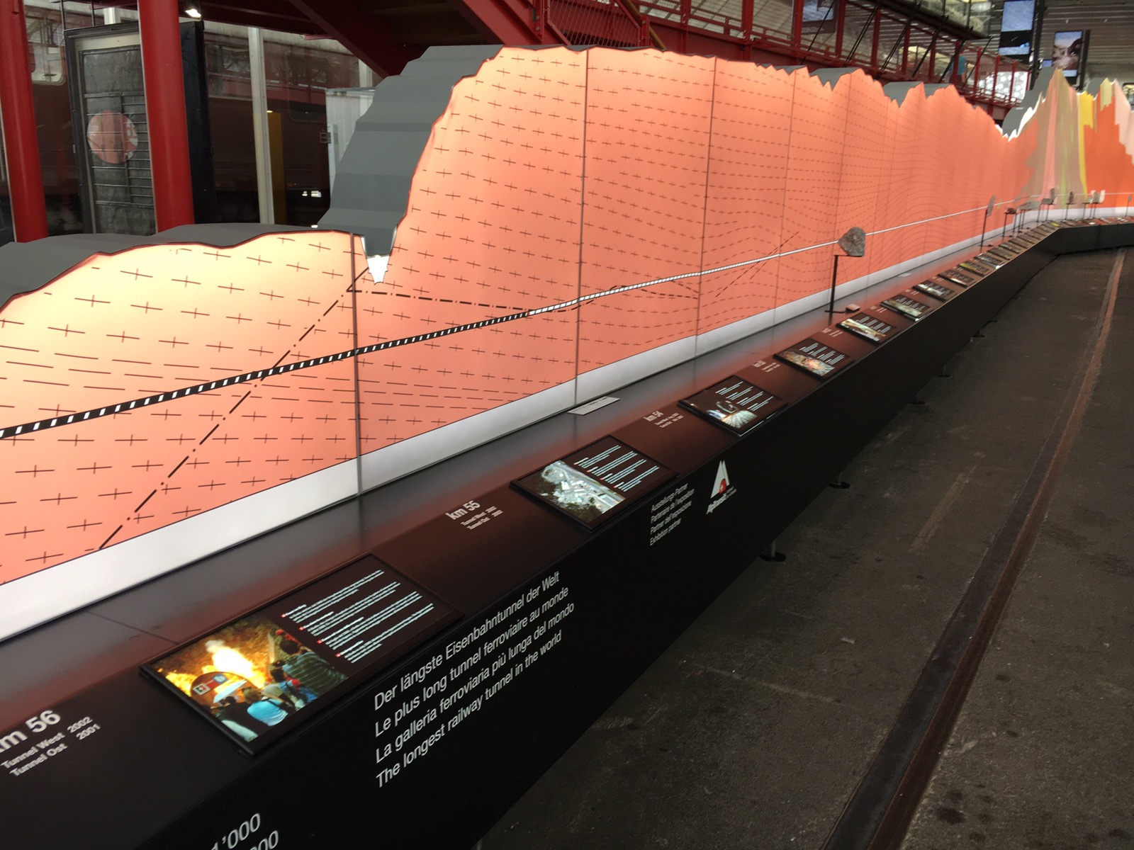 最近才全線開通,施工17年,全長57公里的Gotthard 隧道,當然成為展覽的一部分。