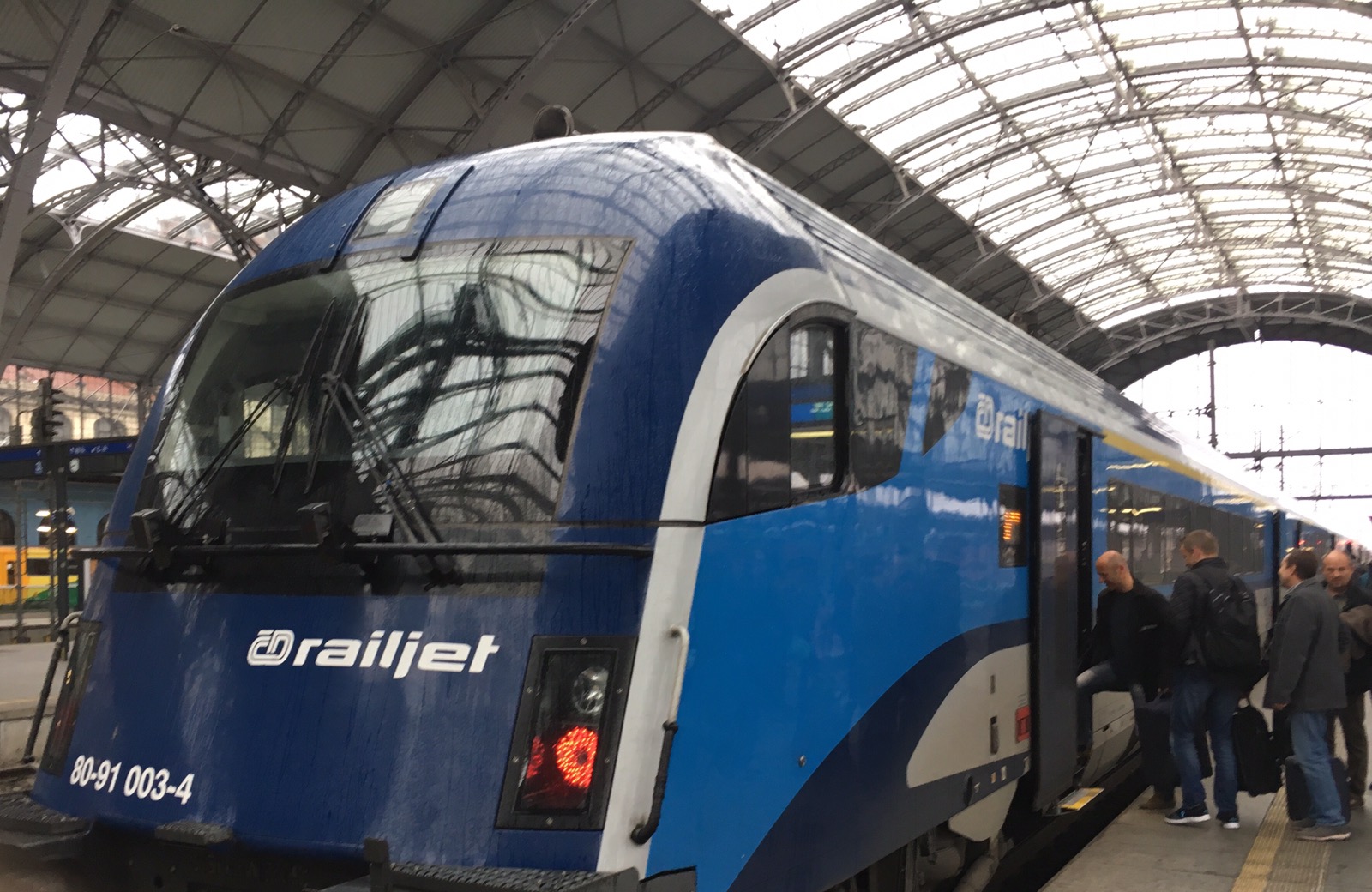 搭乘Rail Jet往布魯諾Brno前進,需要兩個多小時車程,基本上涵蓋捷克由東到西一半以上的距離。沒有高鐵,不過火車時速可以達到140公里。