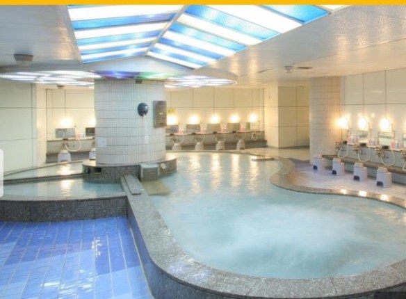 膠囊雖小,交誼廳、浴室、洗手間倒是不小,洗手間也有清潔過的梳子、刮鬍刀等用品。不過,竟然有大浴場,當然是去大浴場囉。大浴場跟日本的溫泉就很接近了,泡完熱水這邊也有沙發躺椅可以休息看電視,真的睡不著加上平時沒機會看日本電視,我一路看到晚上1點多。