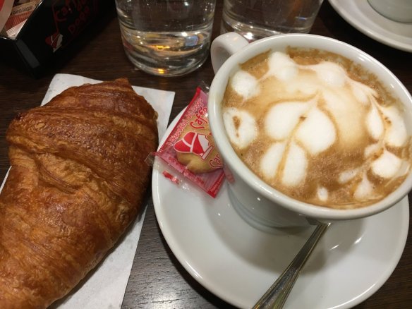 我們待的這個咖啡店,在早上時間都是當地人來買早餐。大部分的人走進咖啡店,就自己去抓了一塊可頌,然後跟老闆點一杯濃縮咖啡,重點是都是站著喝。