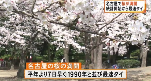 花開狀態:名古屋城五分、戶田川五分、鶴舞公園滿開、荒子川七分、名城公園滿開。