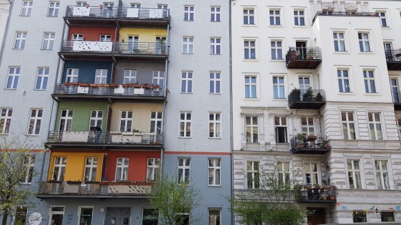 這個跳蚤市場就在一個公園裡頭,我的朋友就住在這個公園的旁邊。這一個區域是以前的東柏林,但是近年來房子被整修得很漂亮,從外表看過來完全不像是東柏林。
