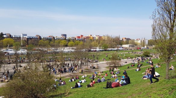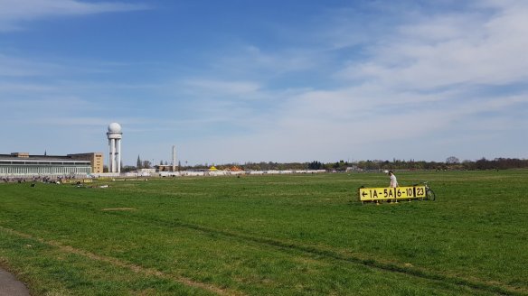 除了跳蚤市場,柏林人週日還去哪裡呢?朋友帶了我前往舊機場。這個機場就跟松山機場一樣,就在市區裡頭,然後在10年前被停用了。經過公民投票後,這個機場沒有拿來興建新大樓,而是變成一個公園。