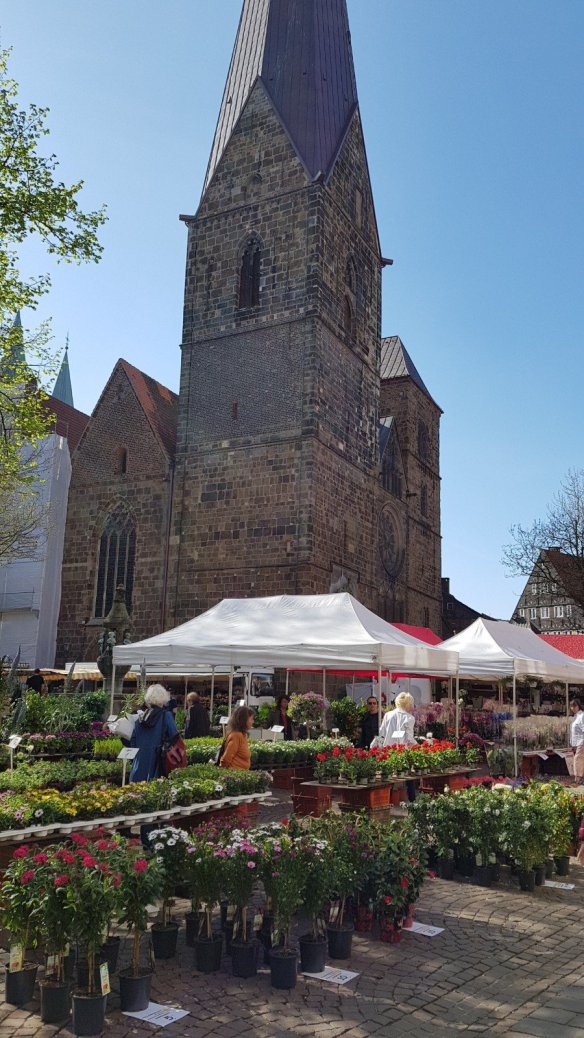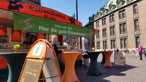 由於是星期六,舊城區的市集廣場上都是購物的人潮。在舊城區有兩個大景點,第一個是教堂,第二個是市政廳。任何一個德國城市,也都有這兩個景點,不過不萊梅的很特別。