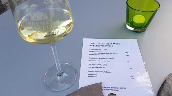 市政廳旁邊還有一個很有名的酒窖餐廳。我並沒有時間去酒窖餐廳吃飯,不過酒窖的樓上,有一個葡萄酒莊,可以單點一杯葡萄酒,才2.5塊歐元。我點的這杯超好喝的,喝完之後又衝進去買了一瓶。