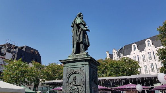 貝多芬博物館我沒有特別逛,沒學過鋼琴小提琴對這些音樂家沒有特別崇拜。不過,市集廣場上,當然有貝多芬的雕像,他的雕像都好嚴肅。