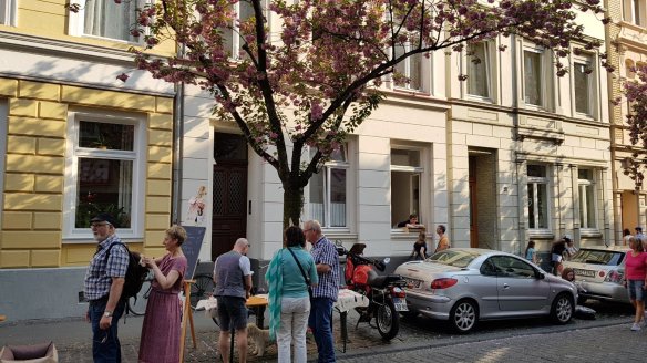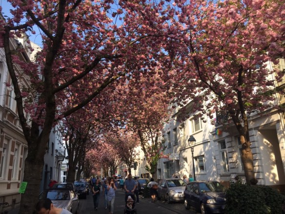 櫻花就在 Heerstraße 跟平行的 Breite Straße 上,每年大概是四月份盛開。對於當地商圈是個重要活動,亞洲客人的數量很多,有點傾巢而出的感覺。