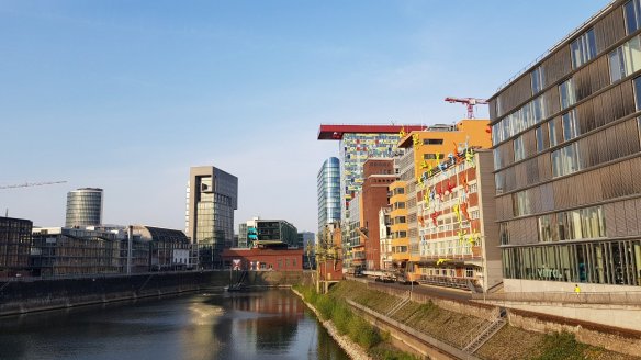 說到港區,當然就不能不提到著名的萊茵塔了。趁著早上沒什麼人,正好從旅館所在的港區,沿著萊茵河找萊茵塔,走回舊市區。