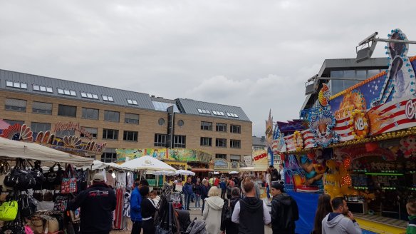 回停車場的路上,我們經過一個市集。放了不少老少咸宜的遊樂設施,以及香腸攤。