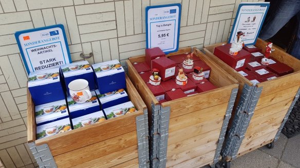 瓷器跟衣服不同,幾乎沒有過季的問題,所以暢貨中心很少。瑕疵品的販售則在家父二十幾年前的年代就停止了。Villeroy & Boch 的暢貨中心只賣耶誕商品。