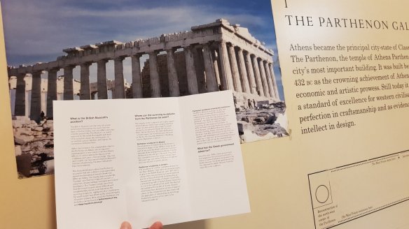 所以如果到希臘玩,可以參觀萬神殿遺址,但是萬神殿雕刻只能到大英博物館看。當然,希臘政府已經多次提出抗議,博物館館方也在不起眼處放了小冊子,針對這些來龍去脈進行解釋。