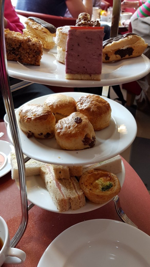 不過這樣走了四小時還是會累,意外地發現街角的咖啡廳有兩人份25英鎊的下午茶。在得知倫敦這兩天下雨時,我曾在臉書上問過該去哪,大英博物館與下午茶都是被推薦的答案。下午茶的文章很多,朋友推薦的F&M一來沒位置,二來兩人份要將近100英鎊。