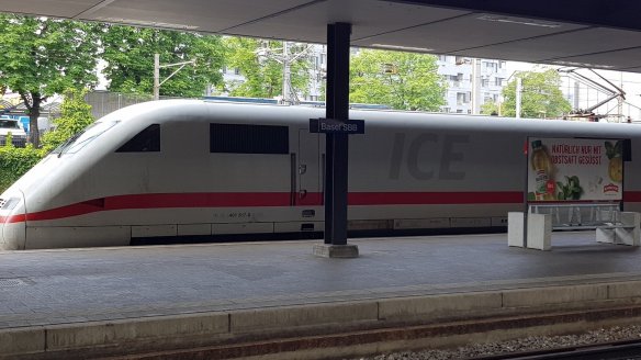 此行的第一天,是一個鐵道迷的身分前往的德國高鐵ICE法蘭克福直達巴塞爾,是出發前三周購買的早鳥票,雖然不是特別便宜,但是多花五塊錢可以生頭等艙。