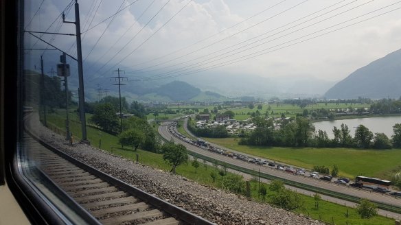 因為是在瑞士境內,所以即便是義大利鐵路近的路段也可以搭乘。義大利IC蘇黎世往貝林佐納,經過世界最長聖哥達基線GBT隧道,長57公里,快40分鐘都在隧道裡。這個隧道,是我這次安排鐵道旅行的主要目的。
