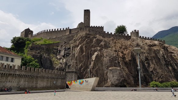 貝林佐納本身是屬於瑞士的義大利語區。雖然是同一個國家,但是其實是被阿爾卑斯山切斷的。經過隧道之後,可以感覺到高度慢慢地下降,整個地形地貌也跟阿爾卑斯山北邊不大一樣。