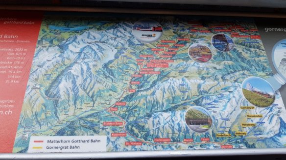 同樣Matterhorn Gotthard Bahn鐵路公司所經營的RB,從安德馬德到Visp。也就是網友瘋傳的冰河景觀列車。事實上,搭RB窗戶也很大且沒有甚麼乘客。
