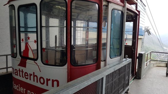 從策馬特纜車站(海拔1600公尺),到最頂端的海拔3800公尺的冰河天堂觀景台,要經過兩個站轉乘。很可惜的是,當天天氣變不好。所以到了Furi站以上,從纜車或從觀景台看出去都只有白白的一片。