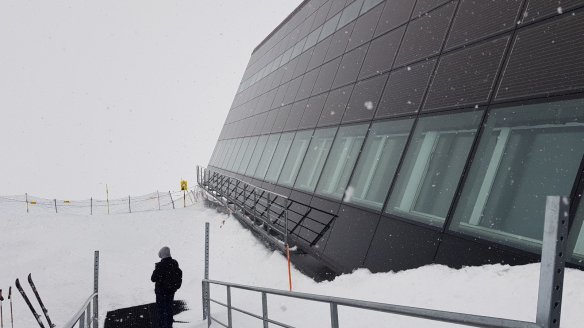 話說如此,還是有很多的滑雪客。這邊的滑雪道號稱最長的有13公里,從冰河天堂觀景台,甚至還可以一路下滑到對面的義大利,上下的距離垂直超過2000公尺。我們到了冰河天堂觀景台,都已經有一點高山症了,在這邊還能夠滑雪,真的很厲害。