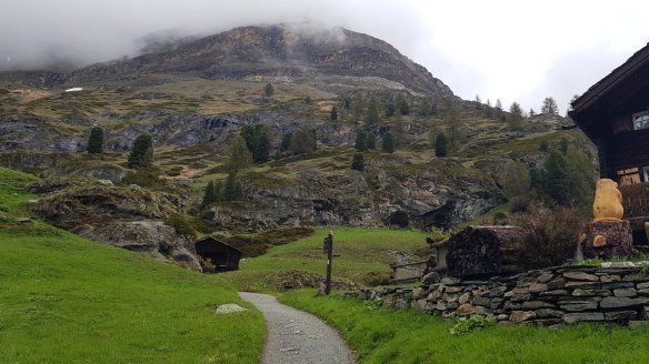 從冰河天堂觀景台下來,我們在Furi站,走路回策馬特。剛開始還有點下雨,後來雨就停了。這個路程大概是七公里,中間還會經過一個很有趣的小鎮Zumatt。