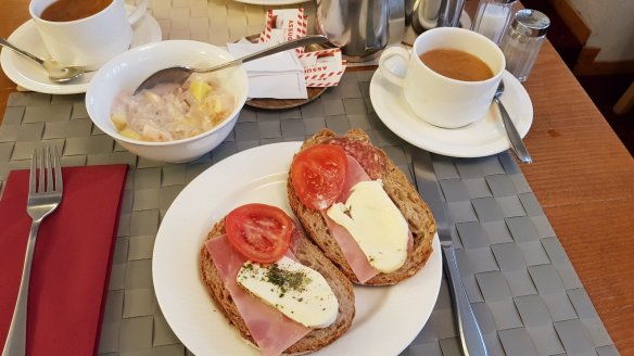 麵包可能接近法國,感覺比德國更優。除了自助的火腿起司外,老闆娘還提供了水煮糖心蛋。