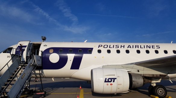 這次搭乘的班機是波蘭航空LOT,以前不知道LOT是波蘭航空,還以為是一家廉價航空。其實,他也是星空聯盟的一分子。從法蘭克福到華沙,要將近兩個小時的飛行時間,使用E170機型,座位比737舒服,而且因為是星空聯盟的關係,使用法蘭克福機場第一航廈,減少奔波時間。