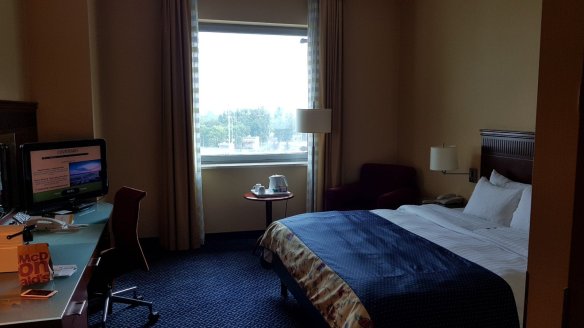 這次在華沙的住宿,是住在華沙機場旁邊的萬怡酒店。透過協議價又是週末,價錢2000台幣不到。因為是金卡會員又透過APP要求9:00入住,一到華沙就可以先放行李跟洗澡。從機場2樓走出來,萬怡酒店就在對面。同時也透過APP要求了隔天下午四點退房。