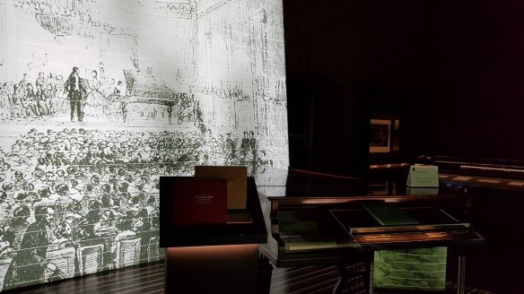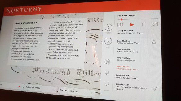 博物館有一個收聽區,參觀者可以帶著耳機欣賞蕭邦不同曲風的音樂。我當然先找我最喜歡的夜曲,果然我最喜歡的古典音樂曲目蕭邦夜曲Op9-2,就在展覽之內。