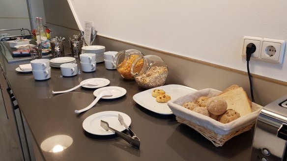 西班牙航空Iberia,法蘭克福飛馬德里,歐盟國內線使用法蘭克福T2的IB貴賓室。因為是國內線,所以比較普通,早餐時段有司康與吐司。