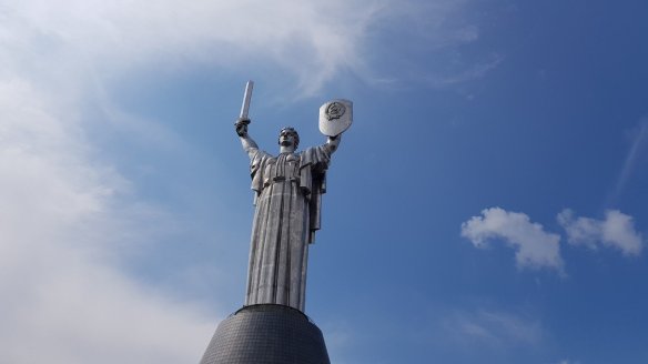 衛國戰爭紀念館,就在同一個山頭走路不遠的地方。這邊有名的景點之一,就是巨大的女生雕像,聳立在基輔的山頭,保衛者烏克蘭人民。