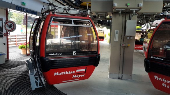我們選擇的纜車 Hahnenkamm Bahn就在坡度最陡的滑雪道,看起來跟貓空纜車一樣,可能是是同一家公司做的。