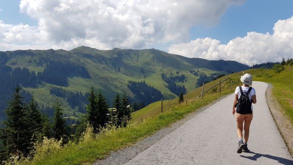 我們這次健行的步道是著名的滑雪勝地Kitzbühel,許多跳台滑雪比賽在這裡舉行。由於是滑雪勝地,當然也可以乘坐纜車上山,再緩步下山。