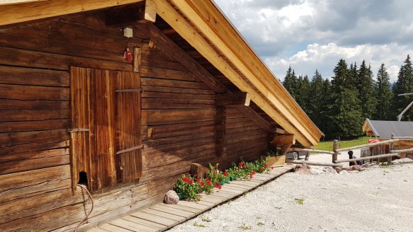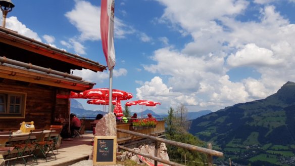 滑雪小屋在夏季就是登山小屋(奧地利稱為alm)。與當地景觀比起來,這種小木屋完全沒有違和感。雖然是小屋,但是其實是正式的餐廳,要好好吃一餐也沒有問題。還蠻多人在這邊點肉盤,以及葡萄酒的。