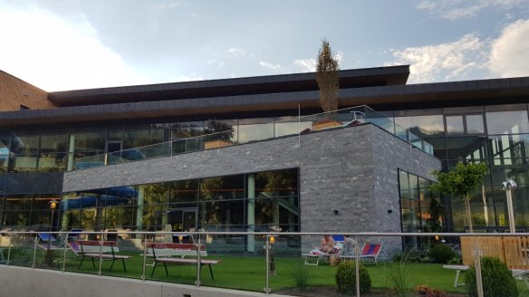 游泳水療館當然在台灣也不少見,但是放在阿爾卑斯山腳下的露營區搭配無敵山景,就真的讓人印象深刻了。
