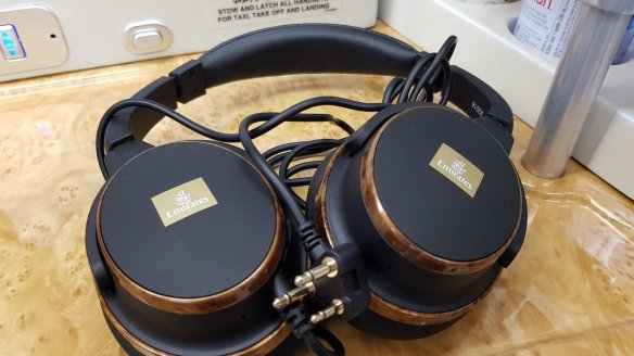 座位旁放置防噪耳機,效果還不錯,比國泰的防噪耳機效果好一些。除了耳機,也附上襪子與眼罩。但是,我其實比較喜歡拖鞋,這次其實也攜帶了自己的拖鞋。