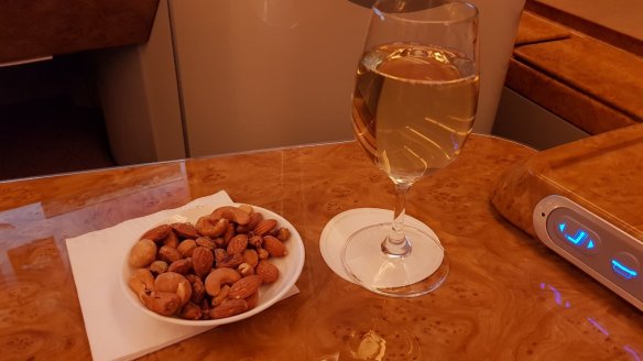 升空的堅果是烤過的,我選的則是白葡萄酒。