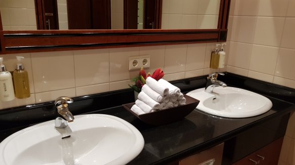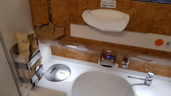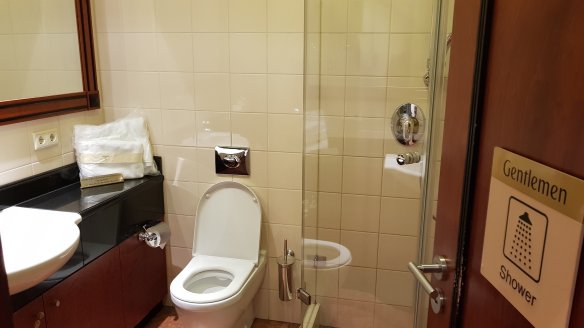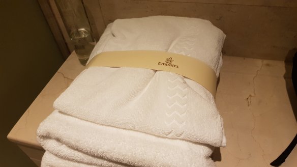 整個C區貴賓室只有兩間,數量也不多(排了40分鐘)。淋浴間不是很大,毛巾與地墊倒是挺好的。或許是因為沙漠,水比較珍貴的故意之舉。