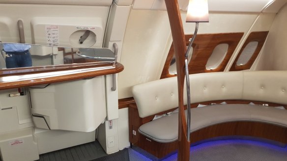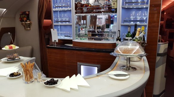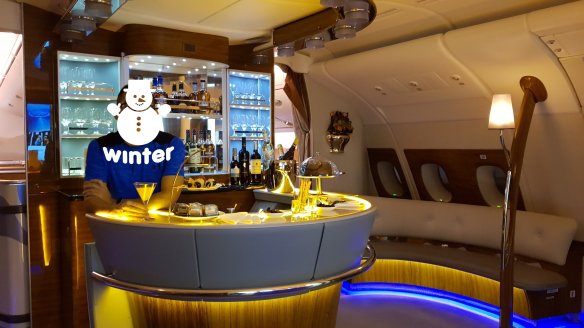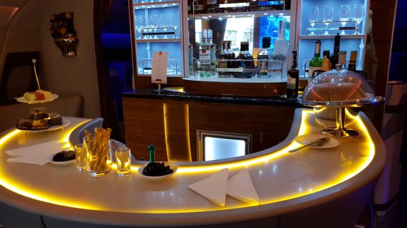 睡完後,大概離杜拜不遠處,我到酒吧待了一下,坐在座位喝喝香檳。這也不失為一個挺舒服的地方。