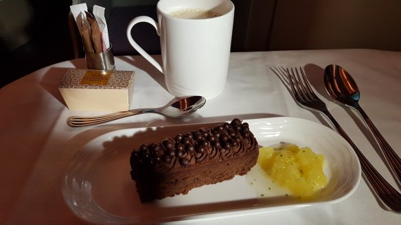 台北到杜拜九小時航程提供兩餐,晚餐與早餐。晚餐我選擇不吃主餐,只留開胃與甜點,主要因為貴賓室吃的有點多,也需要留點時間到著名的空中酒吧走走。
