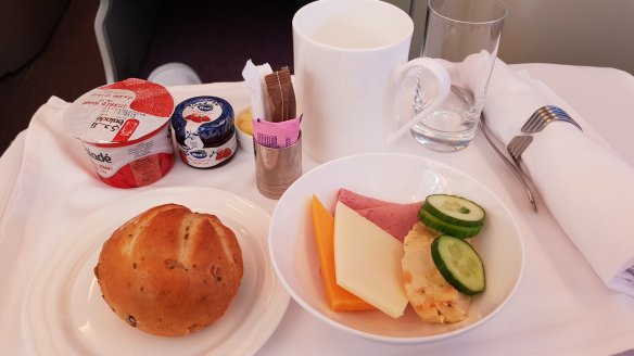 七小時的飛機也是提供兩餐,第一餐是早餐,是這次飛行的第三次早餐了。是比較簡單的大陸式早餐。