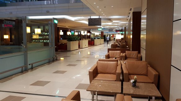首先A區的貴賓室屬於狹長型,就在A1-15的正上方,商務艙客人可以直接搭電梯到登機口。