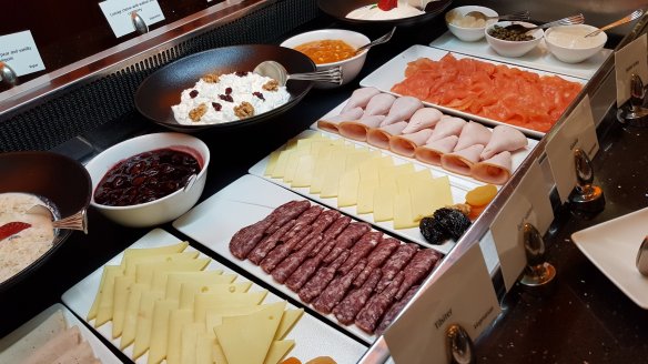 起司盤齊全,沙拉是鮭魚羅曼直接一大碗,其他各式小點也是非常豐富。