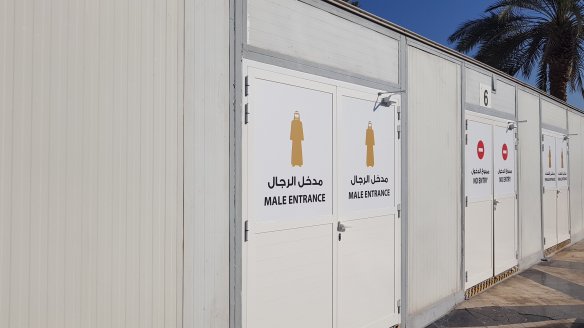 入口有點妙,是類似像帳篷的入口,有好幾個,我因為計程車的關係使用六號入口。男女是分開進入、分開安檢的,女生而是需要借用長袍。不能帶筆電,所以我把整個背包寄放在入口,反而很輕鬆。