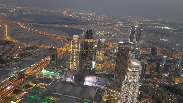 我事先訂了哈里發塔在18:00的門票,本來是預計在夕陽時間,但是顯然時間算錯,到頂上時已經天黑了。