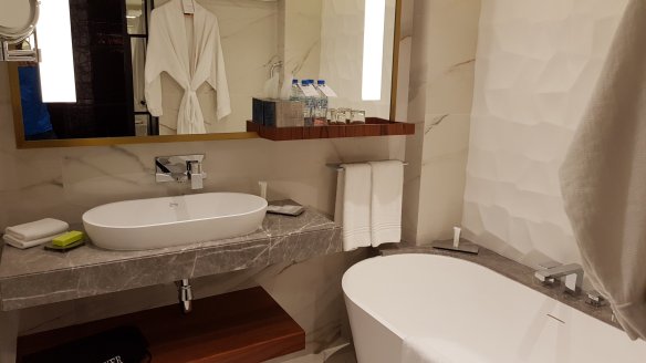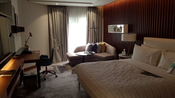 因為是萬豪系統,我提供我的特選白金卡號後,又獲得貴賓室與迎賓飲料。迎賓禮我選了紅酒,是直接送進房間,看了一下原價是42AED(約10美金)。要是這樣可以算一個Stay的話就更好了。