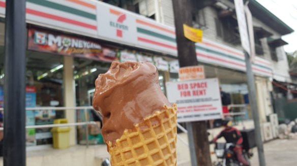 碼頭旁的7-11可能唯一比較貼近庶民生活的地方,有霜淇淋15披索,炸雞飯68披索。