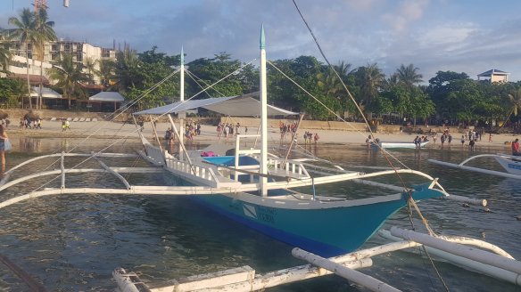 Balicasag每天深潛只有名額150位,事前功課沒做足沒有預定,只好參加一般的遊船加浮潛。清晨海灘旁都是出海的人。