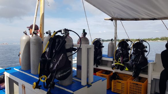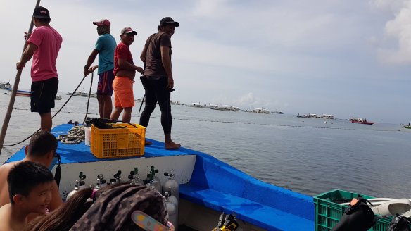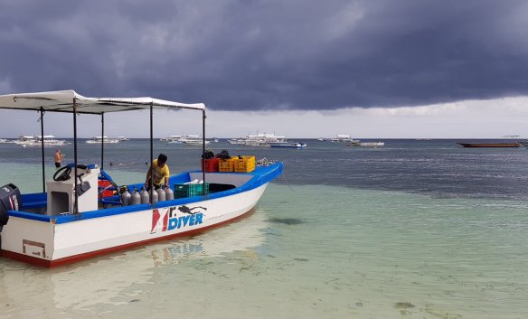 遊船結束後,我們訂了下午兩點的Fun Dive。本來是想去評價不錯的Alona Diver,但是我們抵達哪天因為聖誕夜提前休息,後來兩天都是用Mr. Diver這家潛水店。收費是每潛1300披索,路邊推銷在1200到1500之間,潛水這種事還是別跟潛店太計較。