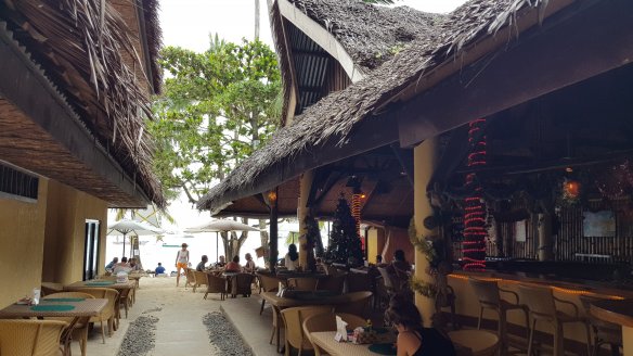 地點就在海灘邊,超級方便,不過計程車也無法直接到達,要從大街上走五到十分鐘才能到。旅店門口就是餐廳酒吧(我們吃早餐跟晚上小酌一杯的地方)以及潛水店。